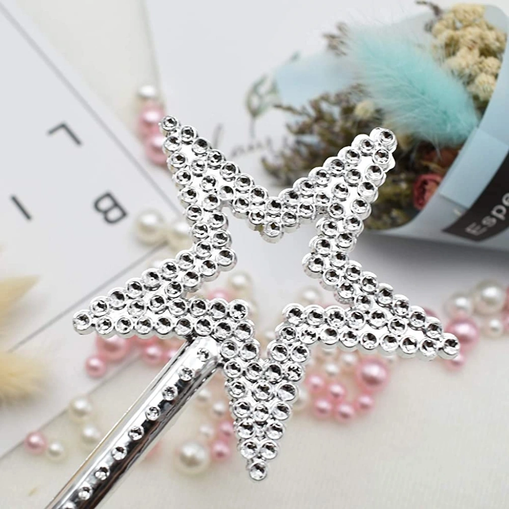 Mey İthalat® Yıldız Model Peri Asası Melek Asası Prenses Asası Metalize Gümüş Renk