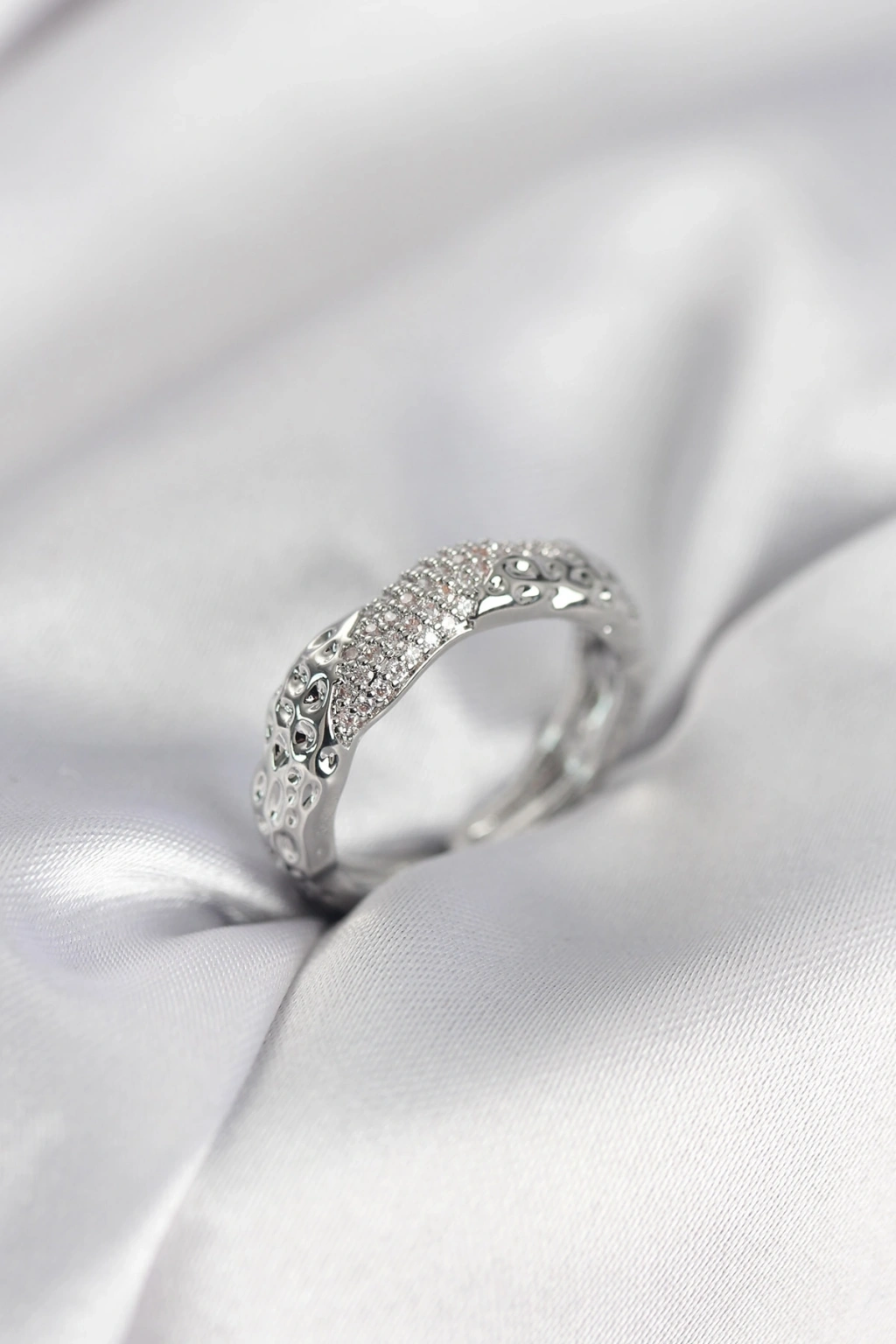 Mey İthalat® Pirinç Gümüş Renk Zirkon Taşlı Düğüm Model Kadın Yüzük