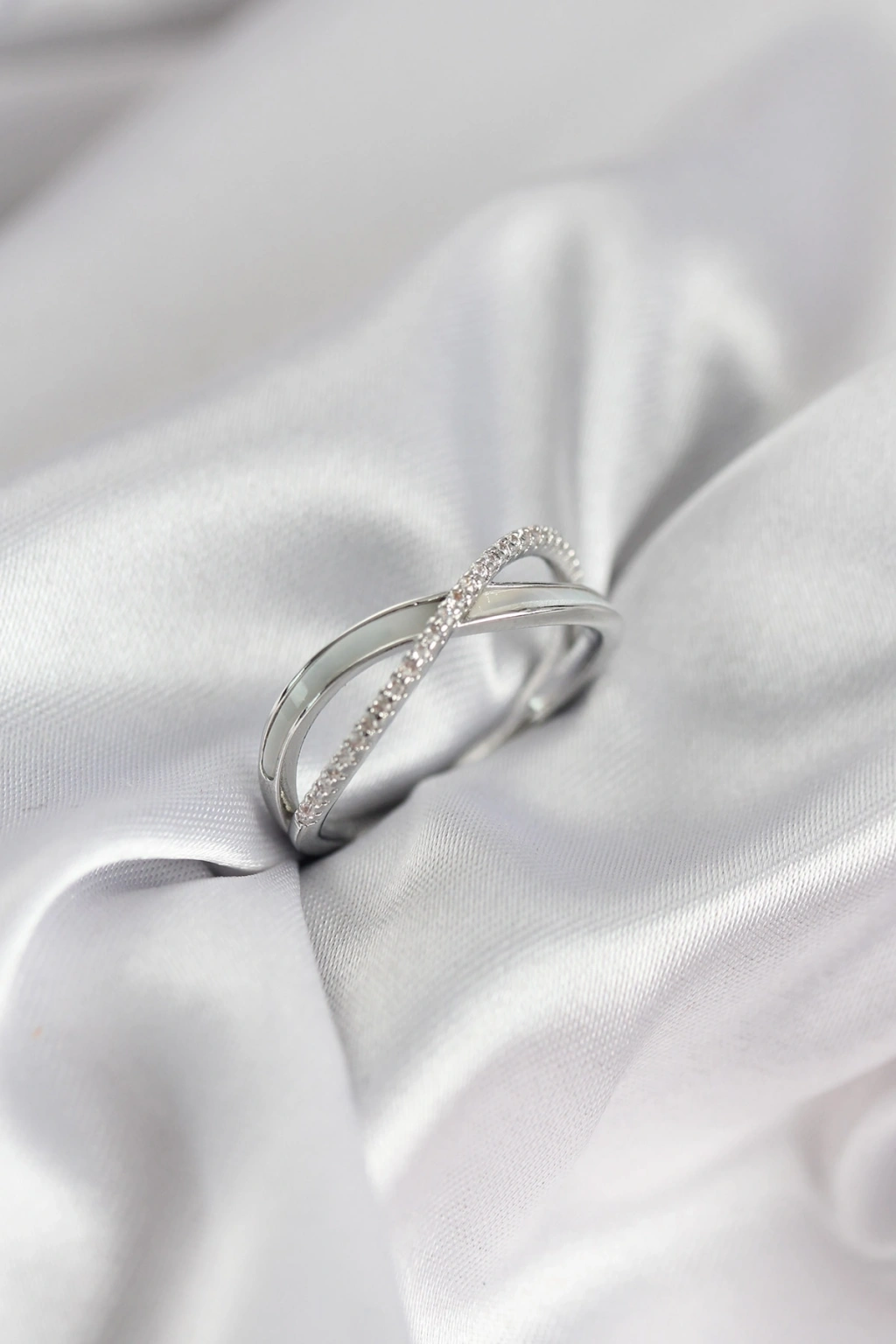 Mey İthalat® Pirinç Gümüş Renk Zirkon Taşlı Düğüm Model Kadın Yüzük