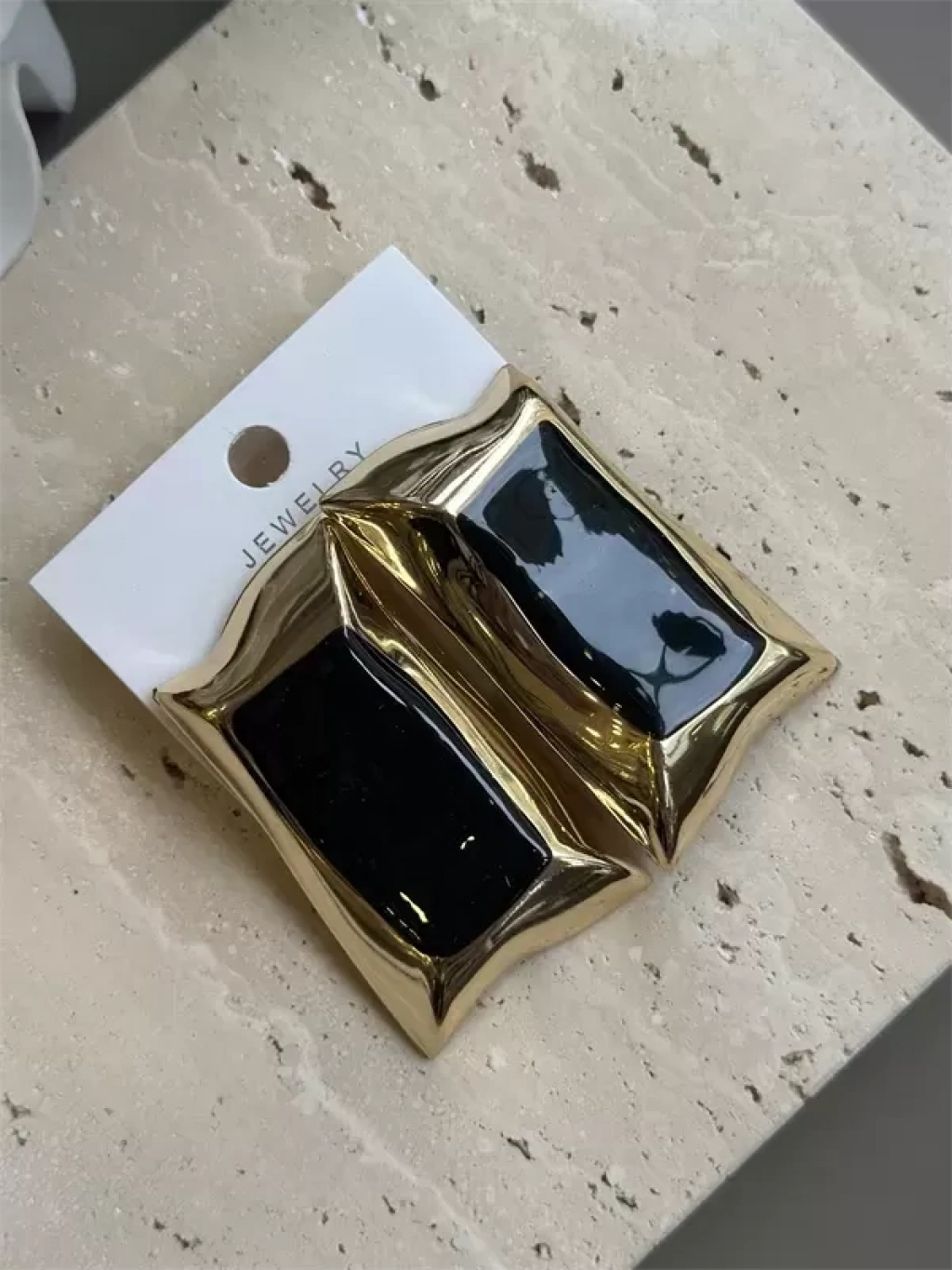 Mineli Kıvrımlı Küpe - Siyah