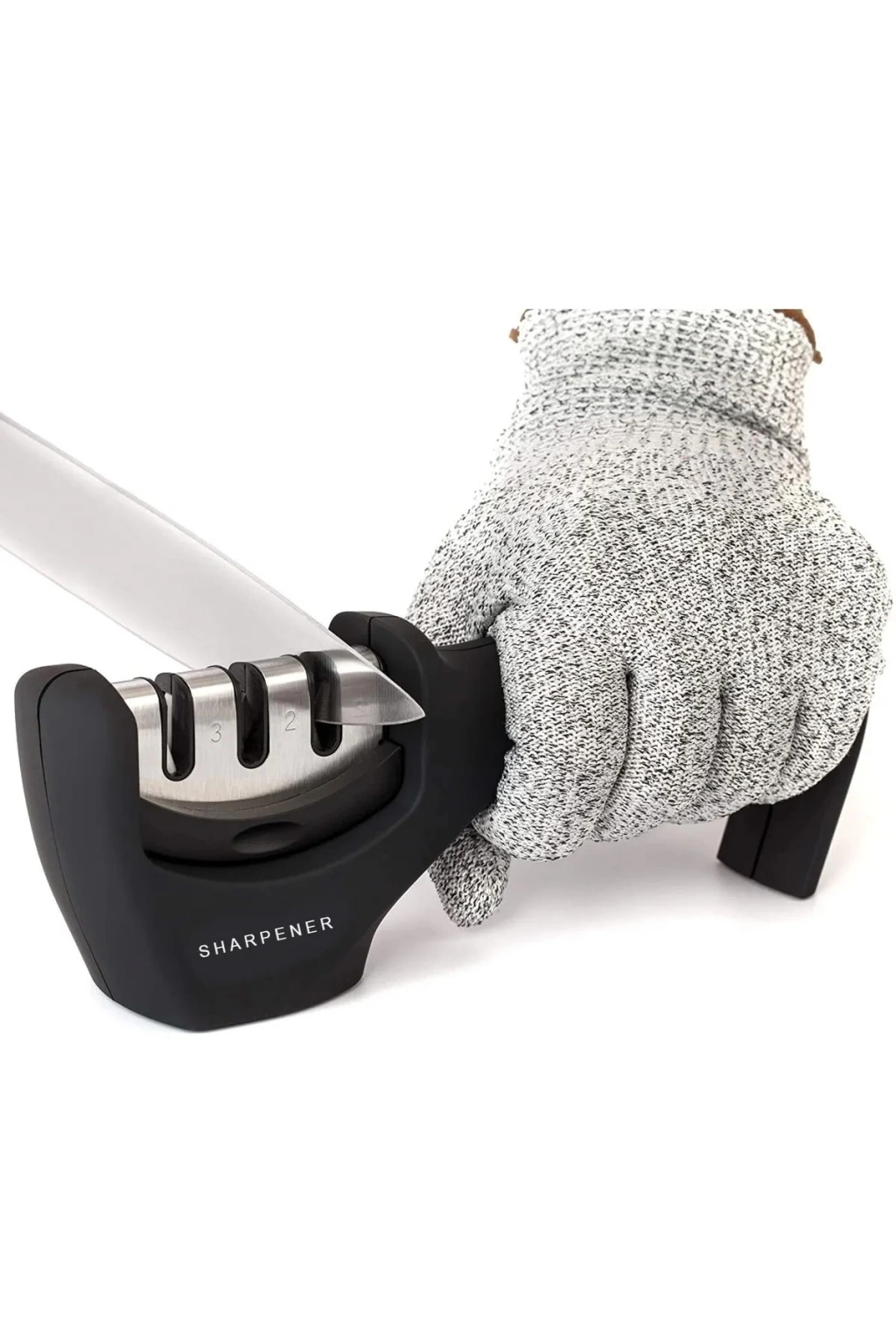 | Profesyonel bıçak bileyici 3 açılı elmas seramik tungsten çelik el bıçakları bileme. Mutfak bıçağı bileyici - 3 aşamalı bıçak aksesuar bileme aracı 3 adımlı bıçak bileme sistemi: Inanılmaz 3 yuvalı sistemimizle bıçak bileme sanatında devrim yaratıyoruz! Bıçağı yuvaların her birine yerleştirin ve hızlı ve etkili bir keskinleştirme için bıçağı birkaç kez yavaşça çekin. |