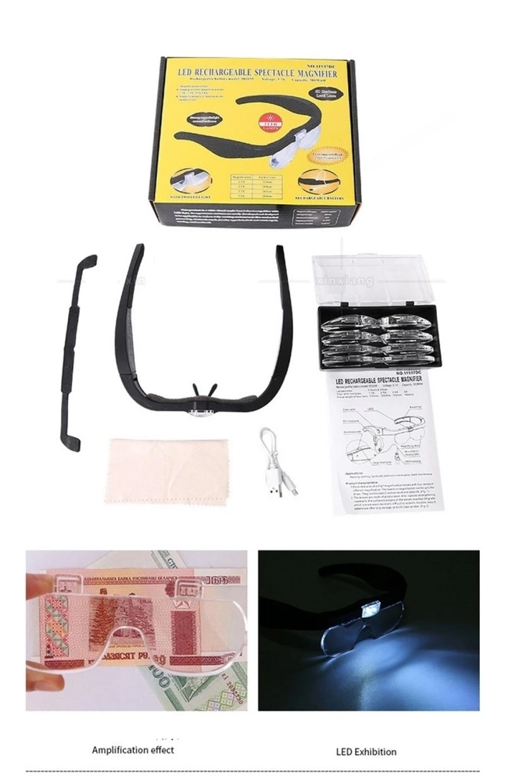 Şarjlı Gözlük Büyüteç 4 Farklı Lens 11537dc
