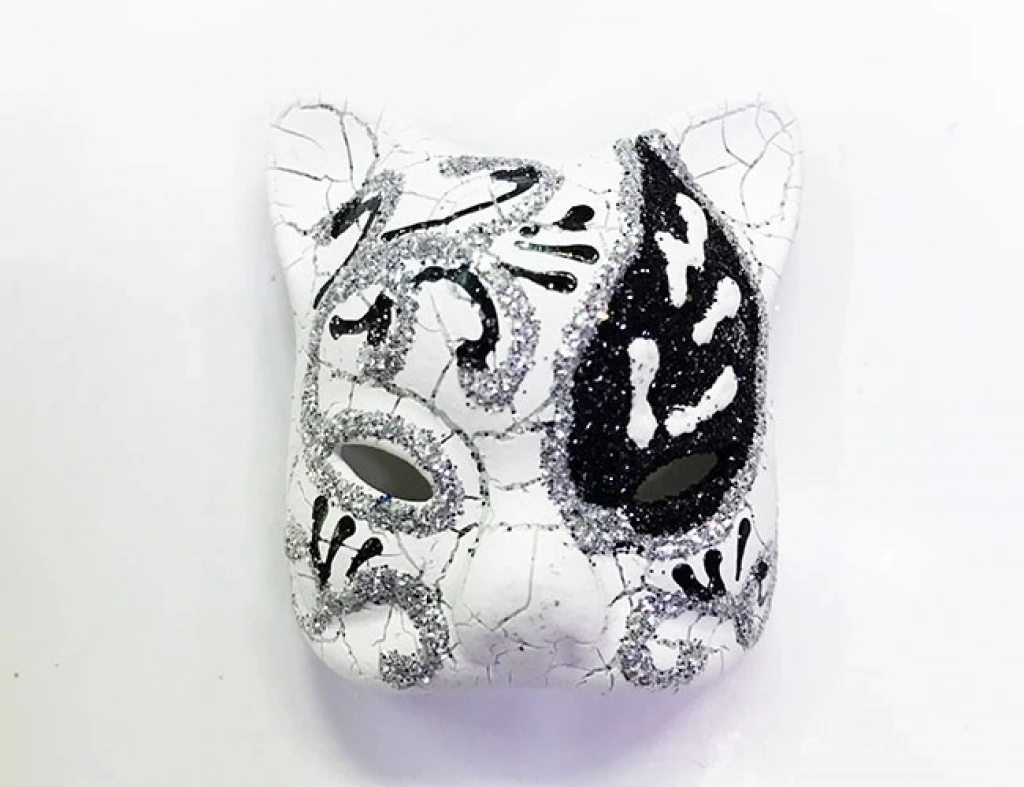 BFS Kadife Dokulu Sim Detaylı Işıltılı Kedi Maskesi Altın Gümüş 20x13 Cm