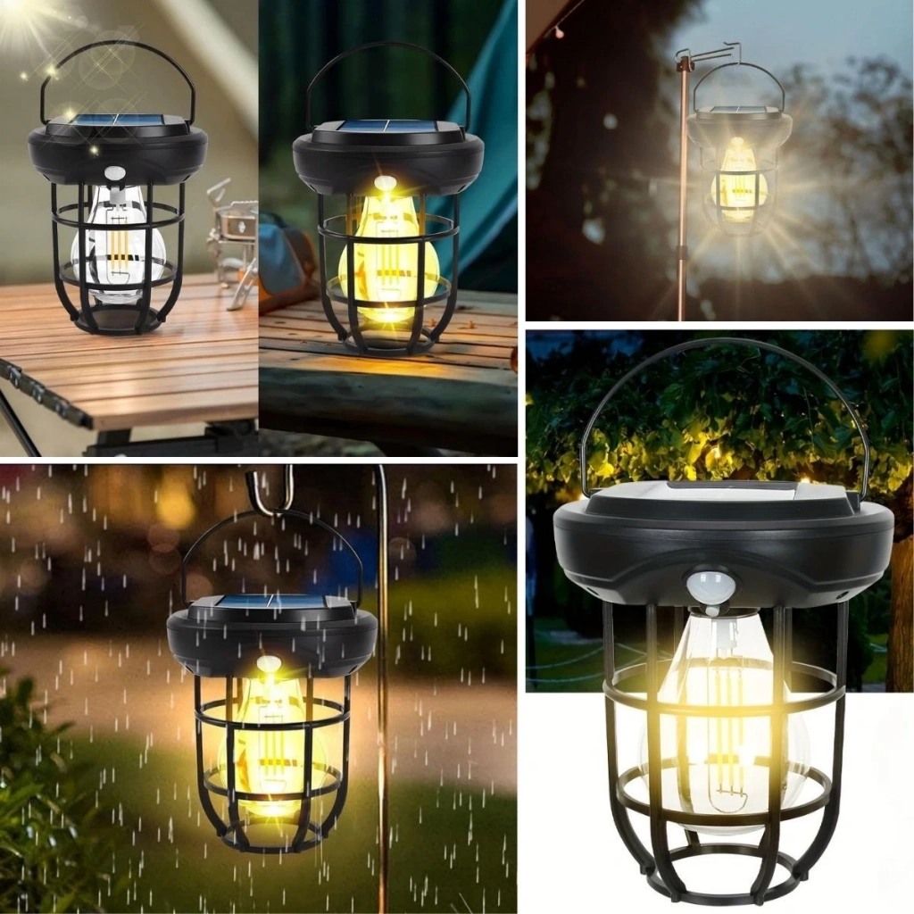 Solar Kamp Feneri – Güneş Enerjili, Otomatik Şarj ve Gece Işığı, Taşınabilir ve Asılabilir LED Dış Mekan a