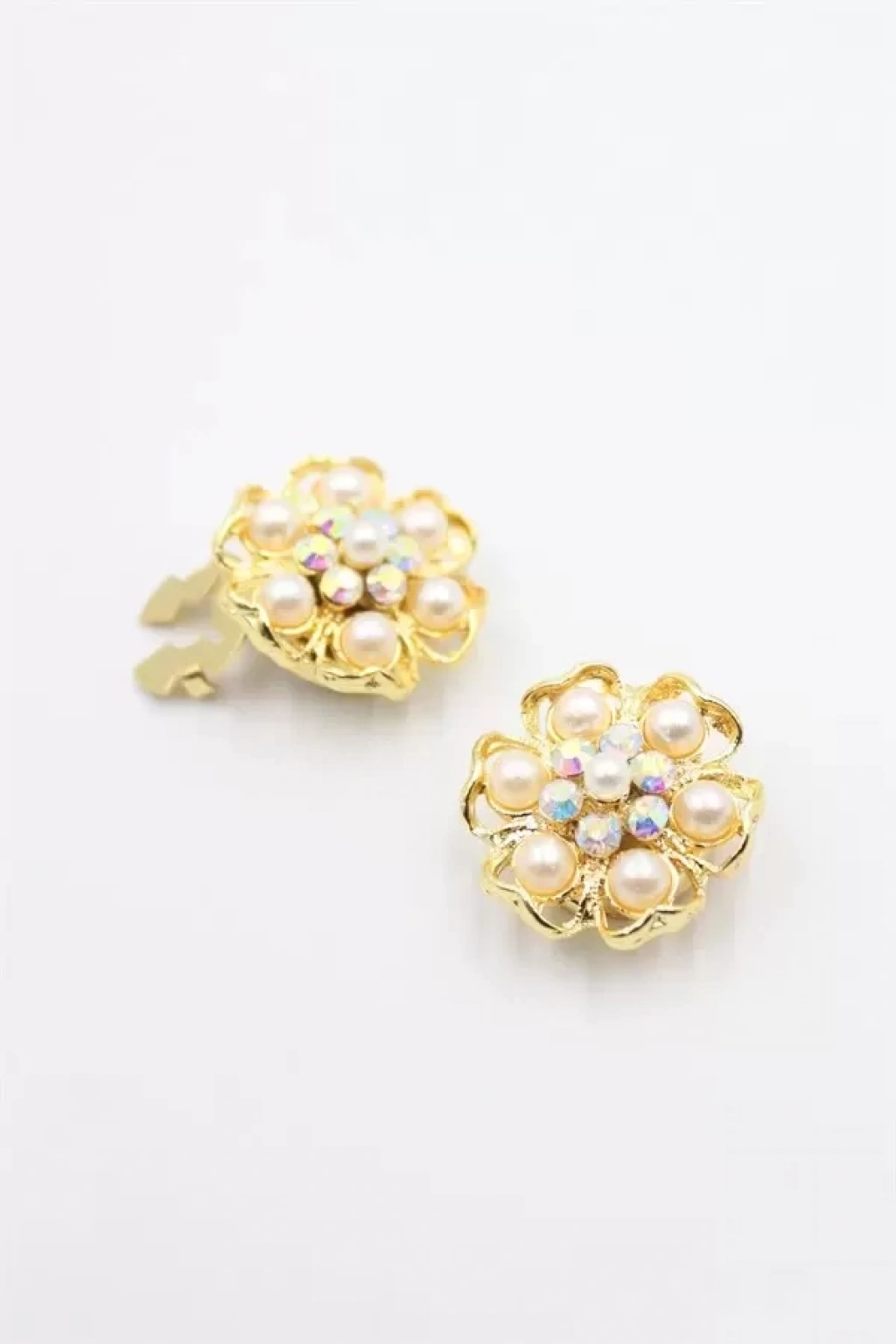 İncili Düğme Broşu - Altın