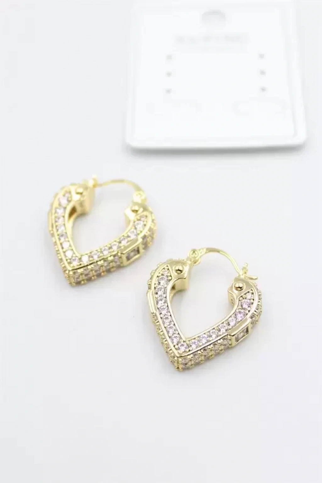 Taşlı Çoklu Görünümlü Küpe - Altın