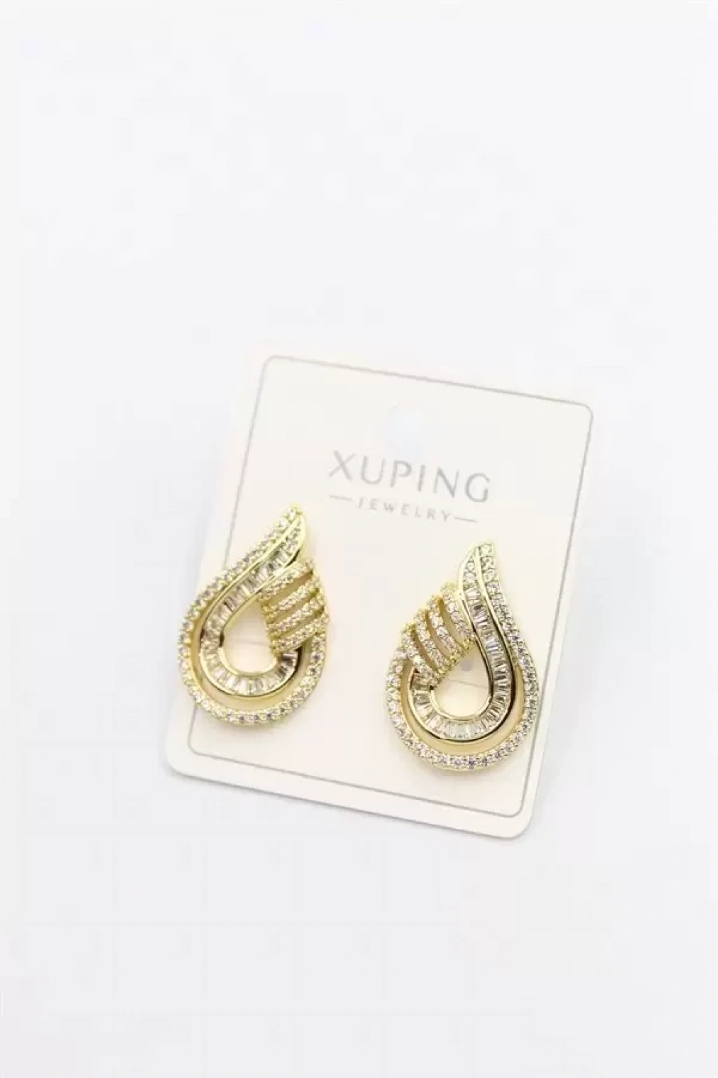 Taşlı Çoklu Görünümlü Küpe - Altın
