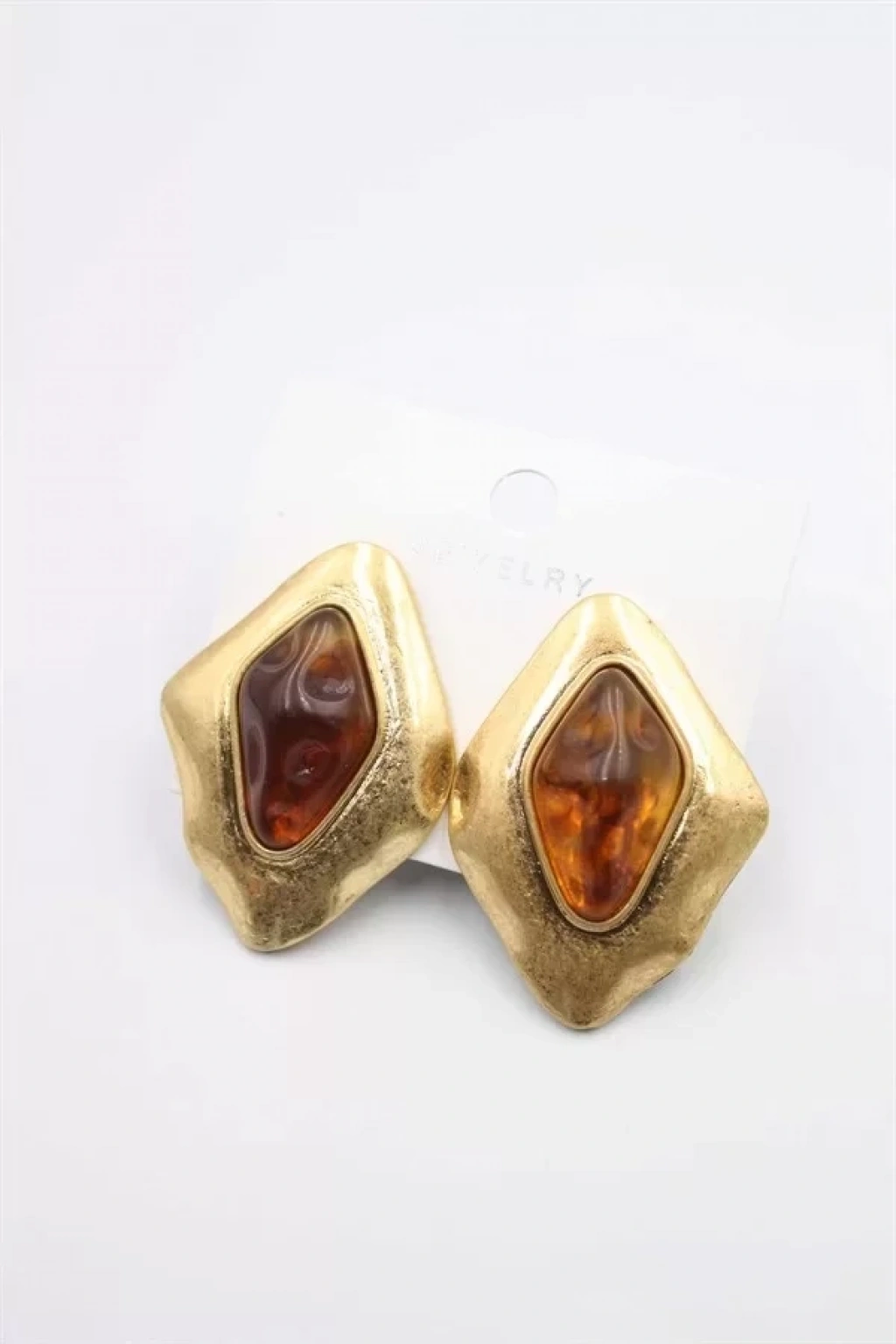 Taşlı Küpe - Açık Kahverengi