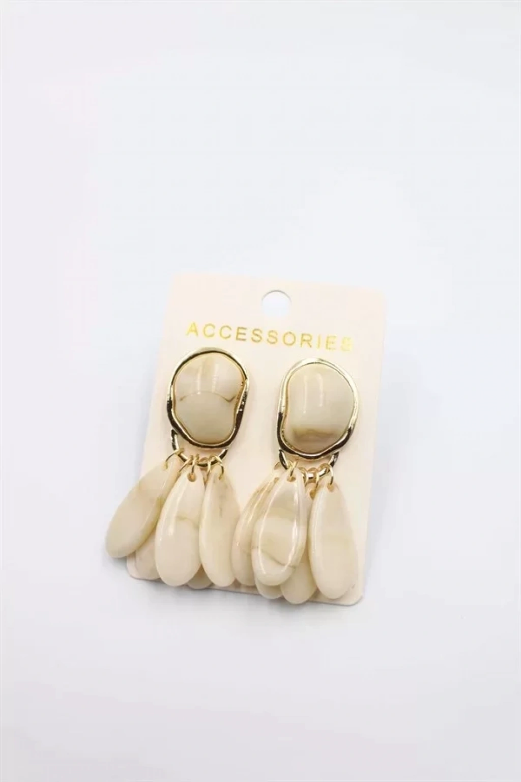 Taşlı Küpe - Krem