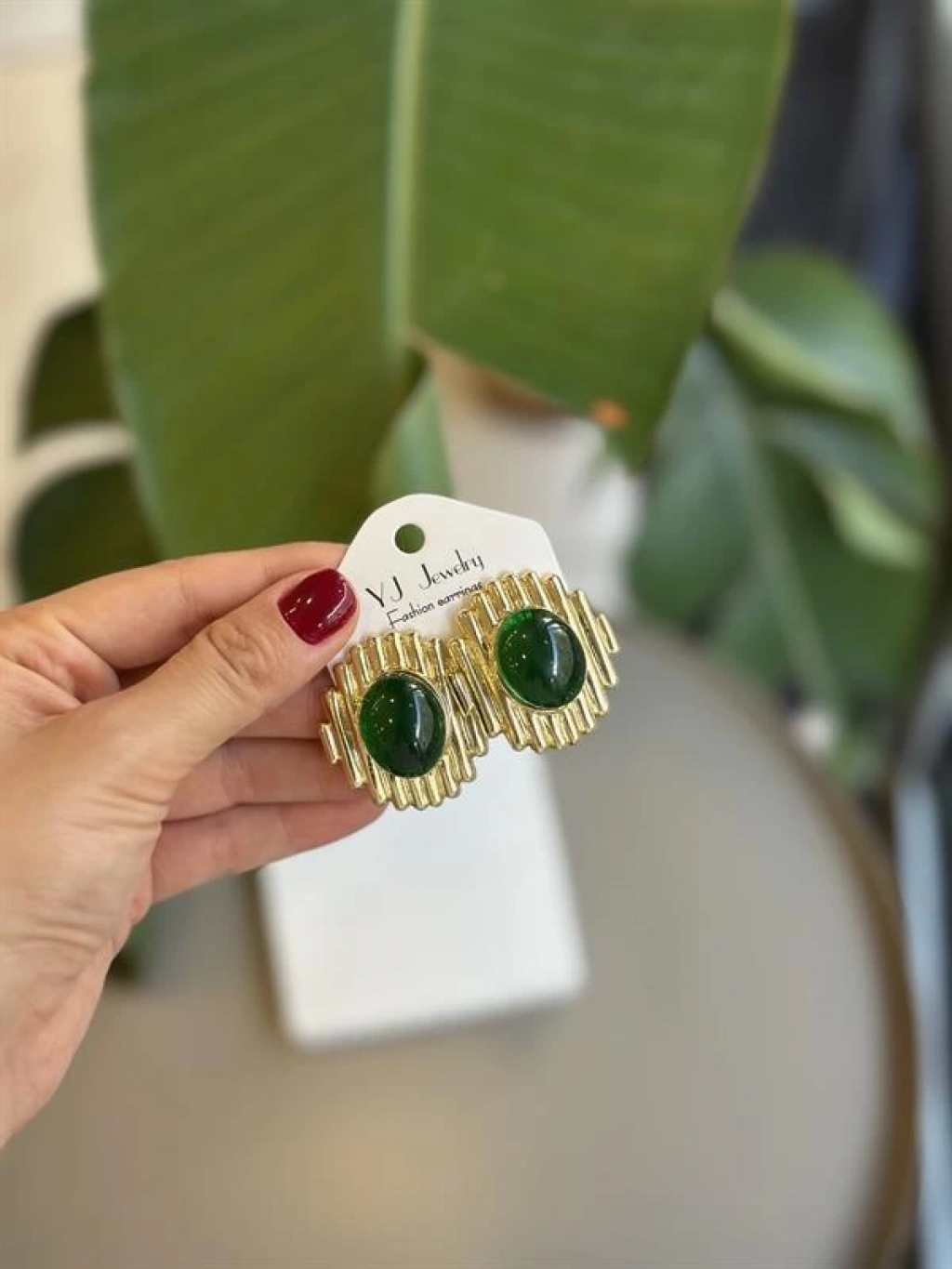 Taşlı Küpe - Yeşil