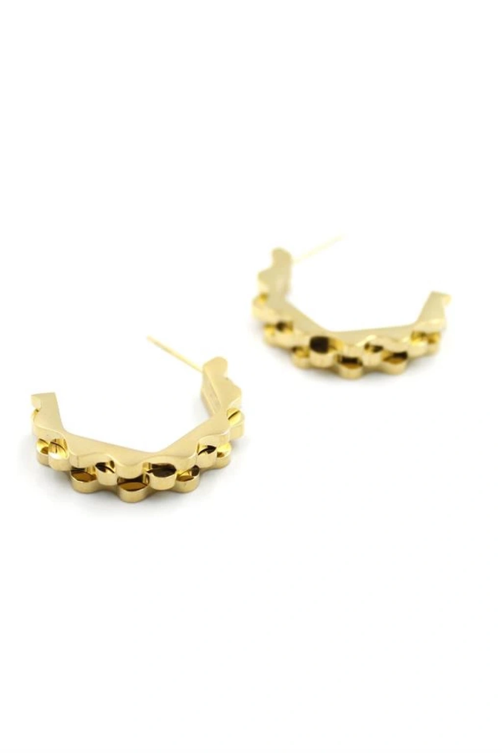 Tırtıklı Beşgen Çelik Küpe - Altın
