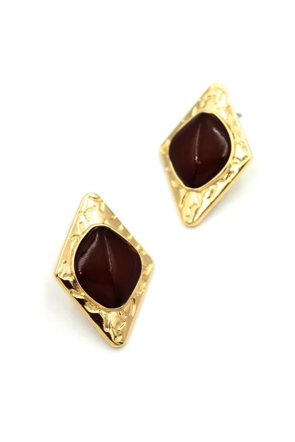 Taşlı Küpe - Kahverengi