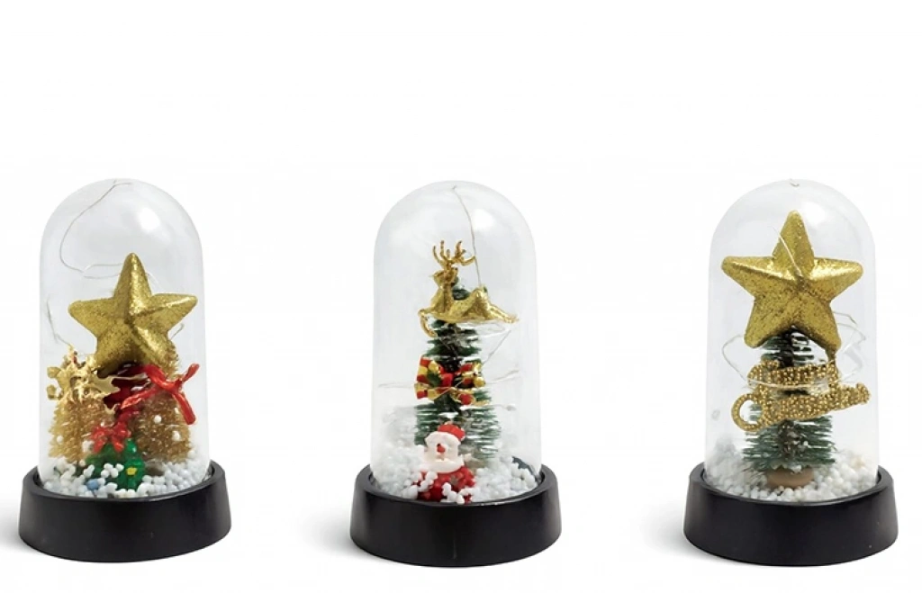 YILBAŞI TEMALI IŞIKLI DEKORATİF CAM FANUS - MODEL 10Ürün ÖzellikleriYılbaşı Temalı Işıklı Dekoratif Cam Fanus - Model 10, yeni yıl atmosferini yaşam alanlarına taşıyan şık ve kompakt bir dekorasyon ürünüdür. 15x8 cm ölçüsündeki ideal boyutu sayesinde masa üstü, sehpa, çalışma masası ve vitrin dekorasyonlarında rahatlıkla kullanılabilen ışıklı cam fanus, cam kubbe tasarımı ile estetik bir görünüm sunar. İç kısmında yer alan yılbaşı temalı figür ve ağaç detayları ile öne çıkan yılbaşı dekoratif fanus, çok renkli ışık efektleri sayesinde loş ortamlarda sıcak bir ambiyans oluşturur. Siyah tabanlı yapısı sayesinde dengeli ve sabit bir duruş sergileyen dekoratif yılbaşı süsü, hem ev hem de ofis ortamlarında yeni yıl konseptini tamamlayan zarif bir tamamlayıcıdır. Küçük boyutuna rağmen dekoratif etkisi yüksek olan tasarımı ile farklı alanlarda pratik kullanım sağlar.Ürün Teknik Özellikleri Özellik Açıklama Ürün Adı Yılbaşı Temalı Işıklı Dekoratif Cam Fanus - Model 10 Model Model 10 Ölçü 15 x 8 cm Tema Yılbaşı Özellik Işıklı Paket İçeriği1 Adet Yılbaşı Temalı Işıklı Dekoratif Cam Fanus - Model 10