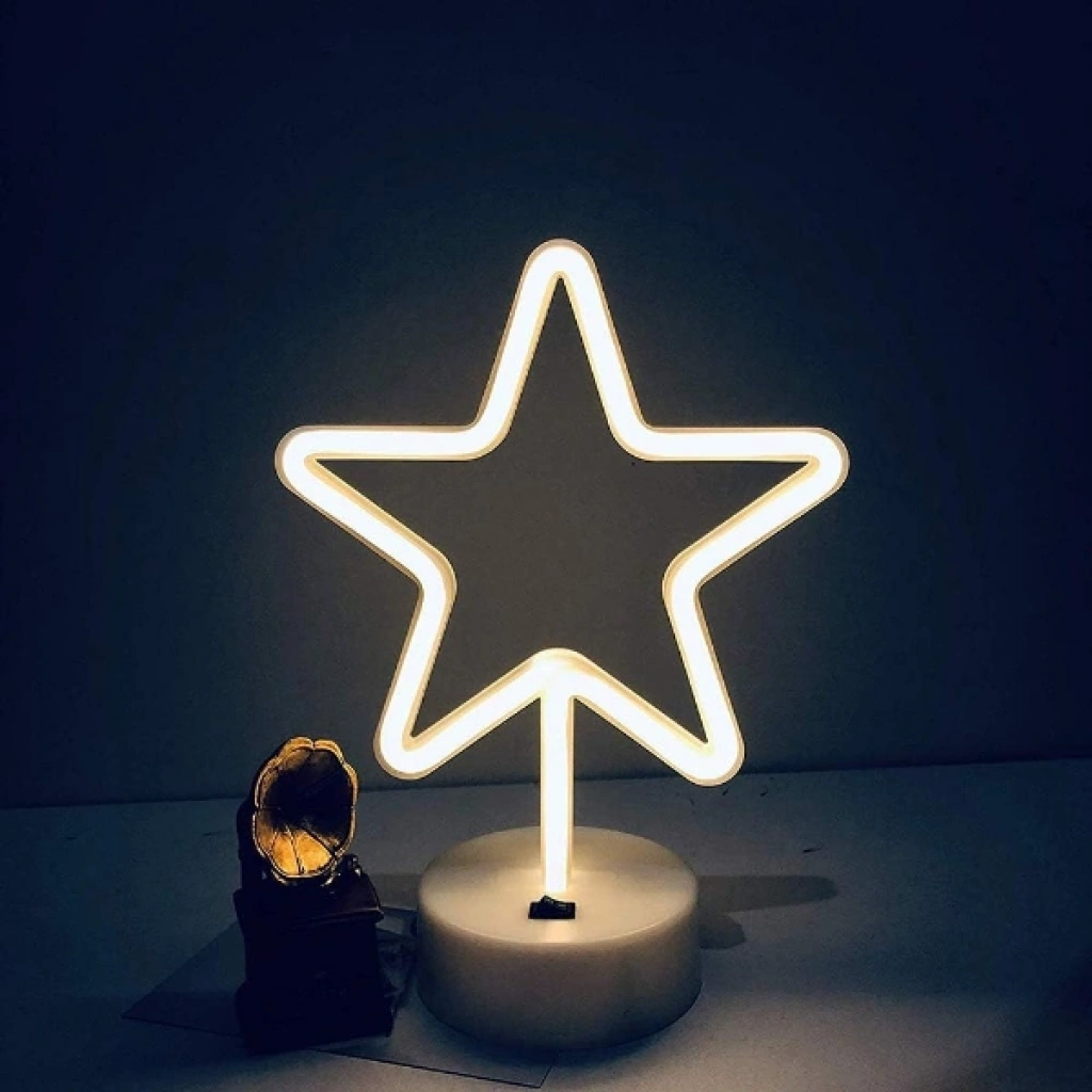 YILDIZ NEON LED LAMBAÜrün ÖzellikleriYıldız neon LED lamba, modern ve eğlenceli tasarımıyla yaşam alanlarına sıcak ve dikkat çekici bir ambiyans kazandırmak için tasarlanmıştır. Yıldız formundaki neon LED ışık, yumuşak ve göz yormayan aydınlatma sunarak dekoratif kullanım için ideal bir görünüm sağlar. Dayanıklı gövdesi uzun ömürlü kullanım desteklerken hafif yapısı sayesinde masa, komodin, raf ve vitrin gibi alanlarda kolayca konumlandırılabilir. Yaklaşık 31 cm yüksekliği ve 19 cm genişliği ile kompakt bir duruş sergileyerek bulunduğu ortama estetik bir dokunuş katar. Ev dekorasyonu, çocuk odası, kafe, ofis ve konsept parti alanlarında tercih edilebilir. Neon LED teknolojisi düşük enerji tüketimiyle verimli bir kullanım sunar ve dekoratif aydınlatmada pratik bir çözüm oluşturur.Paket İçeriği1 adet Yıldız Neon LED Lamba